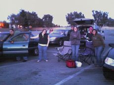 Part 2 of the barbeque was heading to the drive in for a double feature: Shrek The Third and Pirates 3. I haven’t been to a drive in since high school and this was Rachel’s first ever experience with a drive in. She brought along cookies, brownies and ice cream for us all (Moose Tracks…my favorite). We sat in the cold with blankets over our camping chairs through all of Shrek and retreated to the car for the second movie. Only five of us were able to hang through both movies!